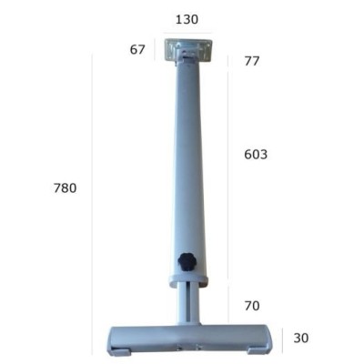 Deze tafelpoot is 71 centimeter hoog en volledig uit geschoven 80 centimeter.