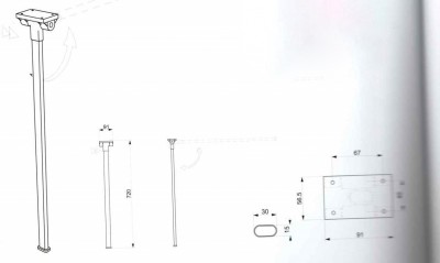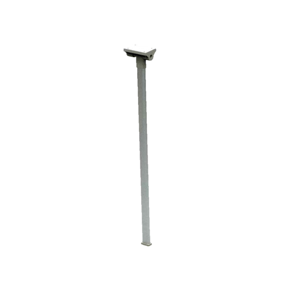 De tafelpoot is gemaakt van aluminium en kunststof.